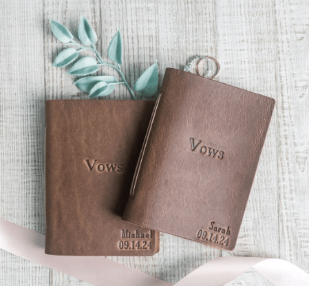 With these stunning leather-bound vow books, they have something beautiful to hold while reading their vows during the ceremony and they can revisit their vows each year on their anniversary.